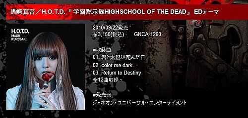 開始發售 , "HOTD"的ED歌曲真的不錯 , 而 黑崎真音 也會替秋季的魔禁2主唱歌曲 ,